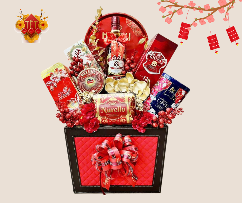 Giỏ quà đẹp, sang trọng, thay lời chúc tốt lành cho một năm mới thịnh vượng